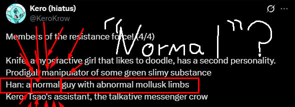 So, this is the most beautiful, intelligent, and interesting alien/mollusk in ApocalypseDay. He is so intelligent that he can build any weapon, medical device, or security system imaginable. Han has absolute knowledge of medicine, technology, and firearms, which means that he makes up for his weakness of not having a strong body because he is a mollusk with these three important areas of knowledge. And, his beautiful cream-colored eyes, slightly yellowish like ivory make him looks even more sweet, cute and... hmm.. uh well that's all you need to know about him